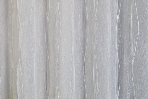 特徴 :生地も柔らかく上品なクラッシュボイル刺繍レースカーテン。
