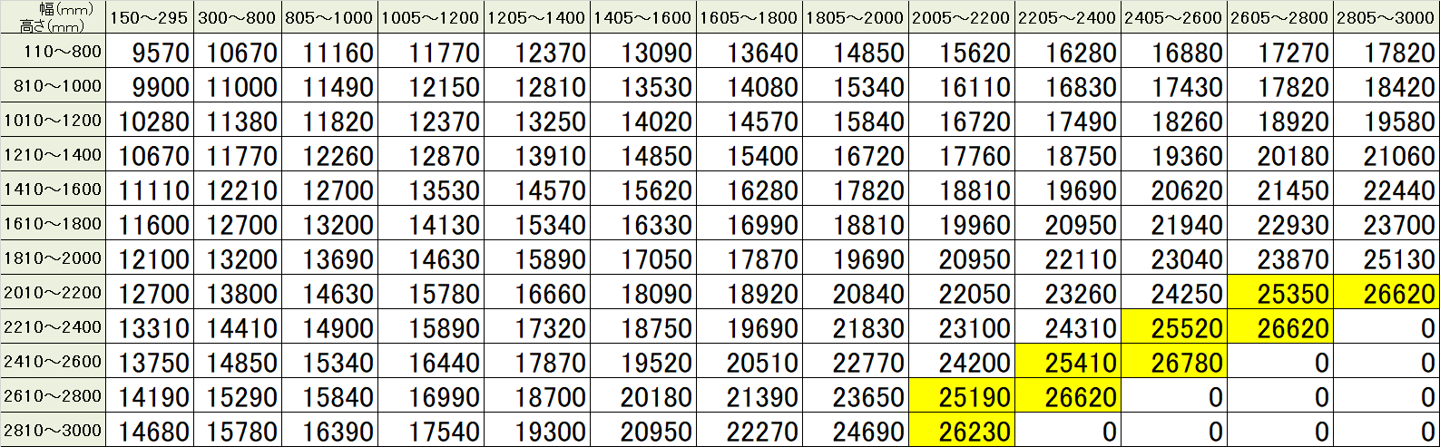 サイズ・価格一覧