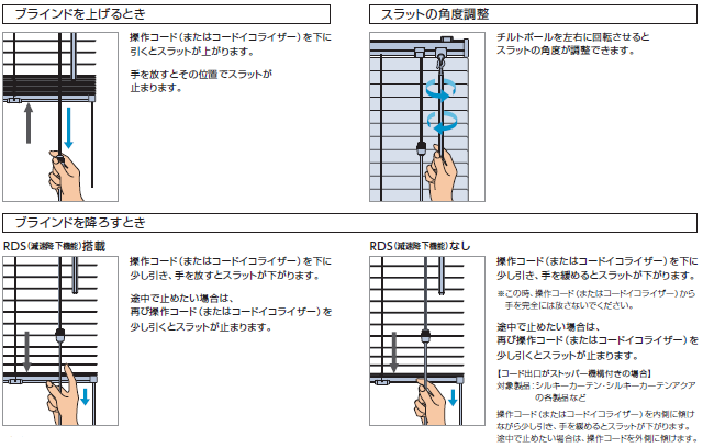 操作ポール・操作コードの長さは、製品高さにより、下記の表のようになります。