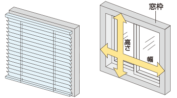 幅(W)・高さ(H)ともに、窓枠の外側寸法以上にしてください。