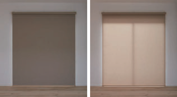 1枚のスクリーンを巻き上げることにより、採光を自由に調節できるロールスクリーン。