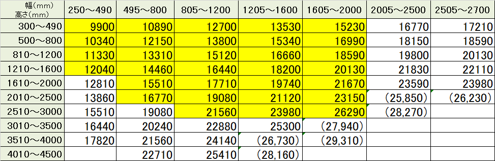 ■ チェーン式は左表すべてのサイズで製作可能。ただし、( )の部分は面積6m2以下での製作。
