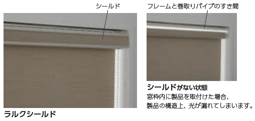 「ラルクシールド」には、フレームと巻取りパイプのすき間からの気になる直射光を遮る“シールド”が付きます。