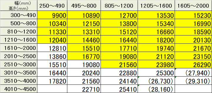 ■ チェーン式は左表すべてのサイズで製作可能。ただし、( )の部分は面積6m2以下での製作。