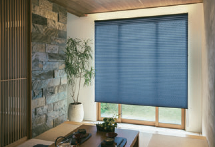 プリーツ加工されたスクリーンをたたみ込むように上下に開閉することで、採光を自由に調節できるプリーツスクリーン。