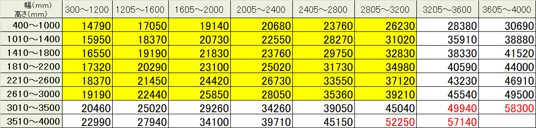 サイズ・価格一覧