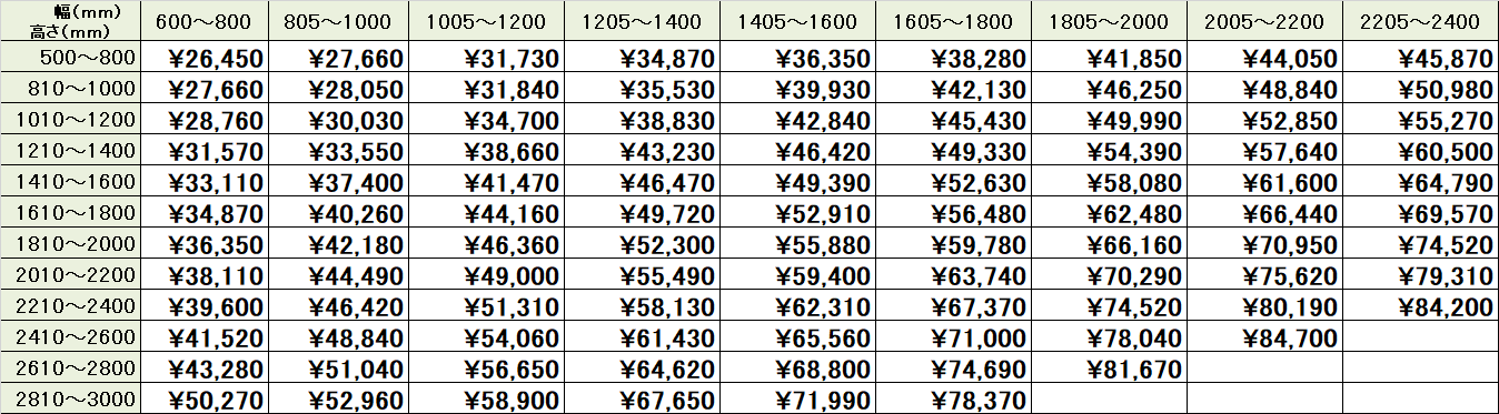 サイズ・価格一覧